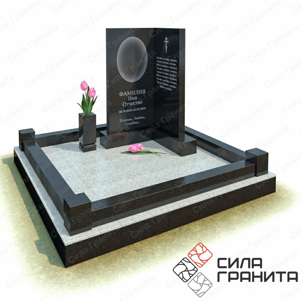 В стоимость входит стандартная площадка размером 2000*2000*100 облицованная гранитной плиткой, ограда из гранита, 2 памятника. Портрет и установка в стоимость не включены