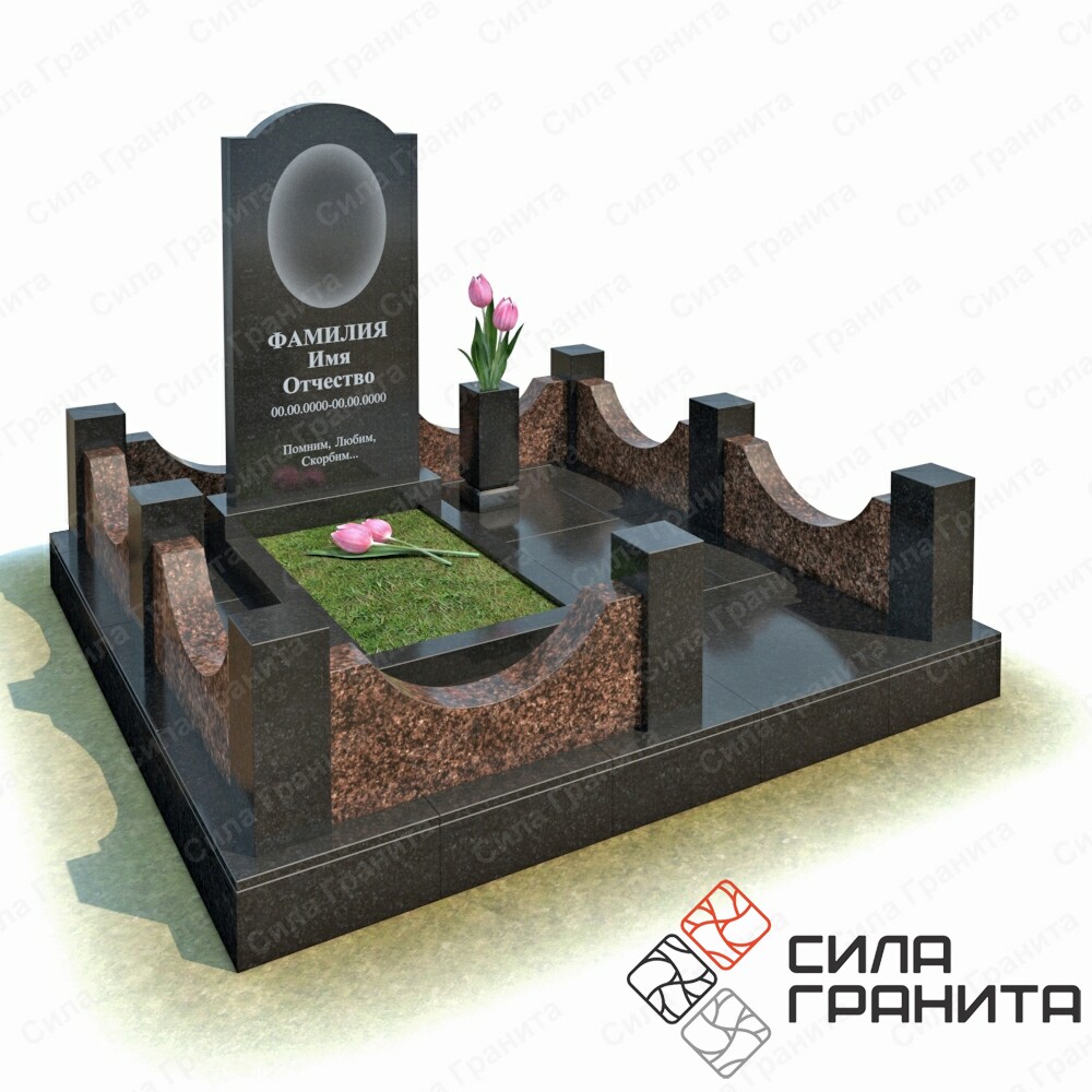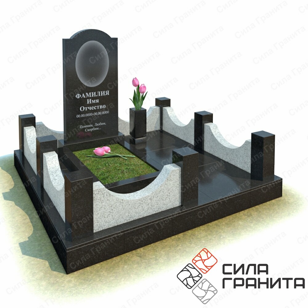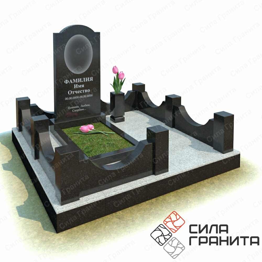 В стоимость входит стандартная площадка размером 2000*2000*100 облицованная гранитной плиткой, ограда из гранита, памятник, цветник, гранитная лавка и стол. Портрет и установка в стоимость не включены.