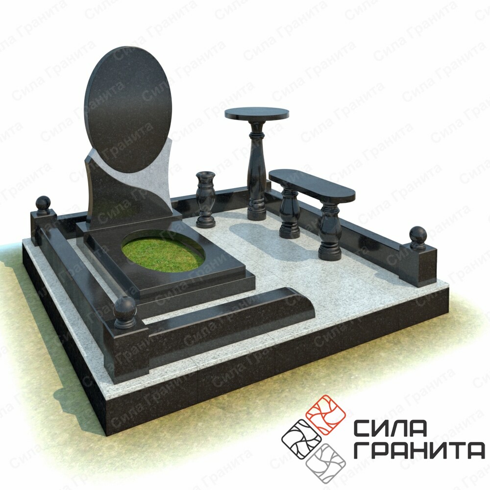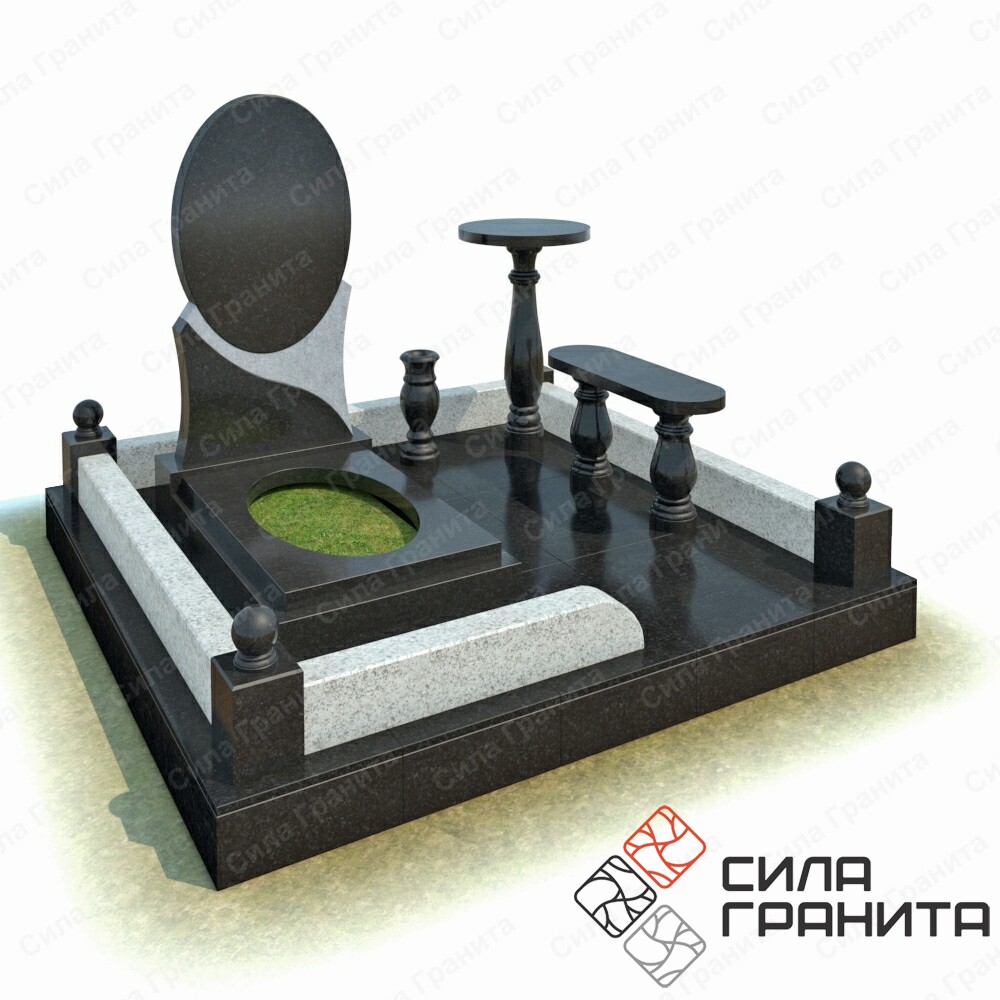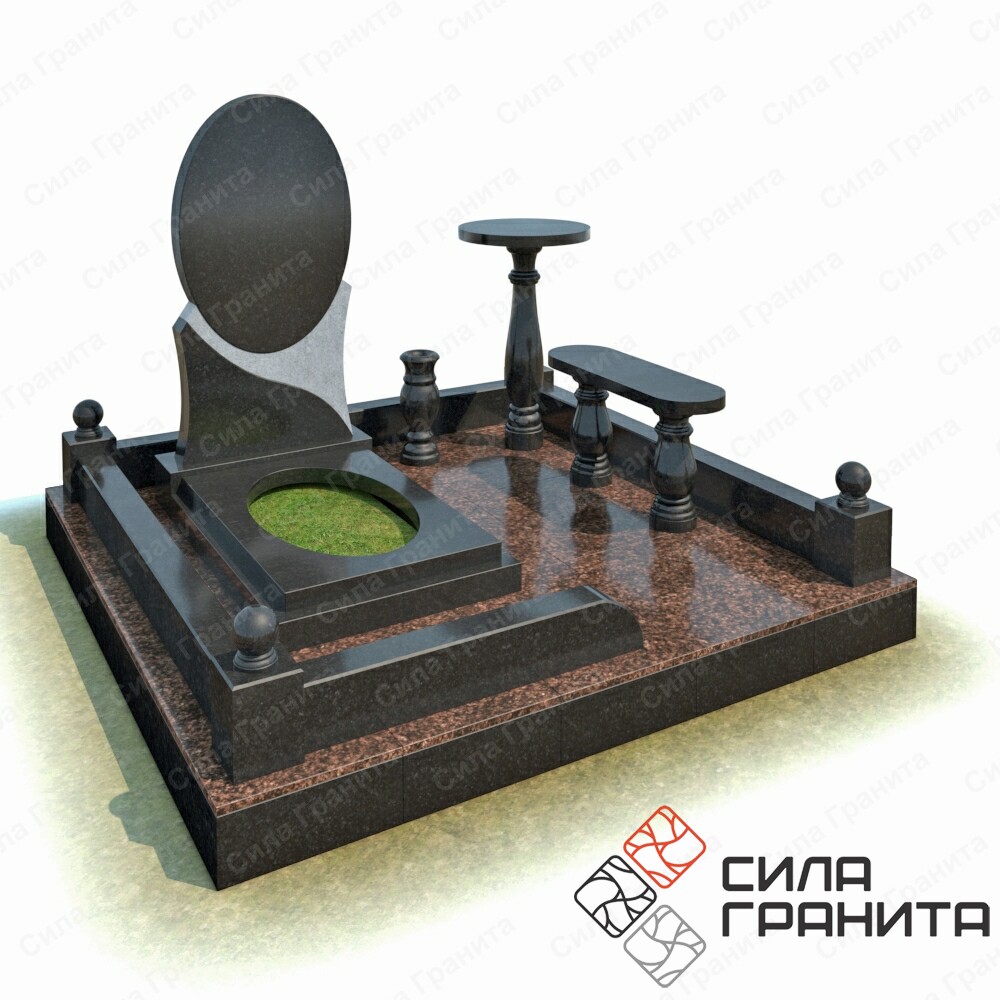 В стоимость входит стандартная площадка размером 2000*2000*100 облицованная гранитной плиткой, ограда из гранита, памятник, цветник, надгробная плита, гранитная лавка и стол. Портрет и установка в стоимость не включены.