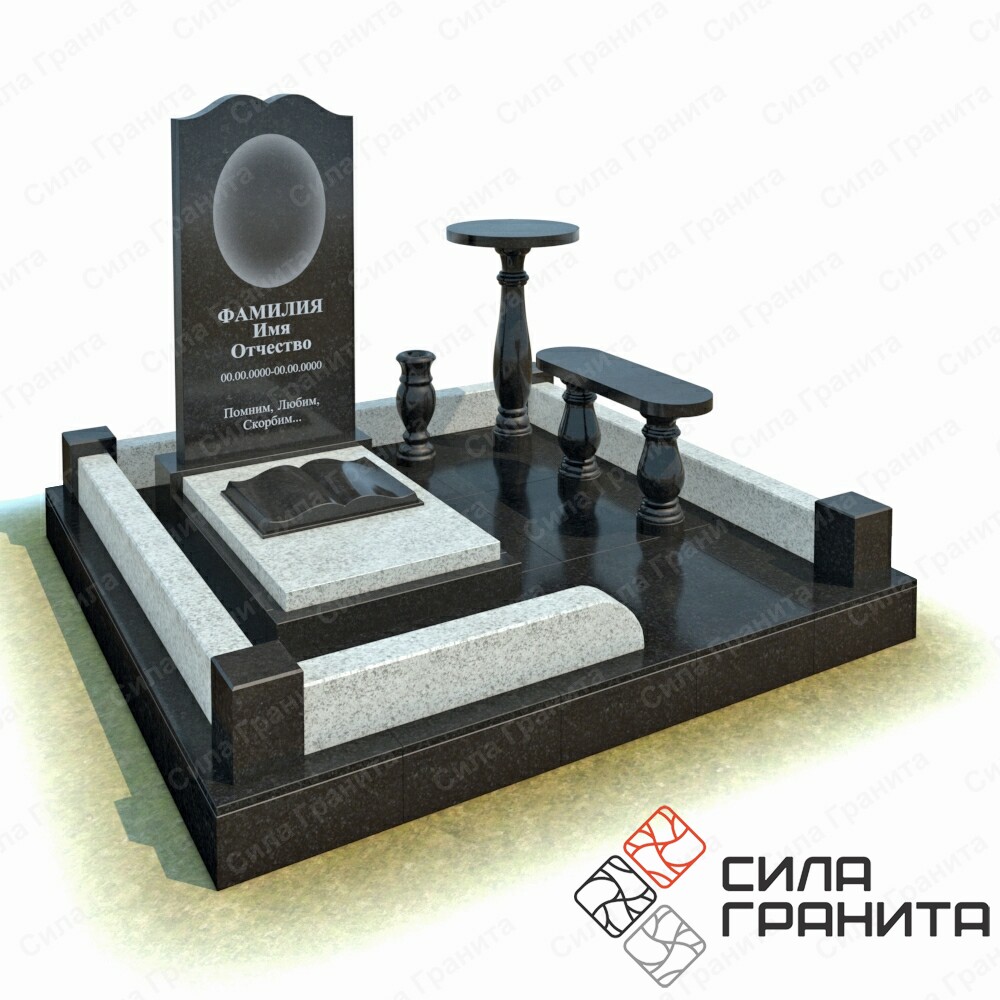В стоимость входит стандартная площадка размером 2000*2000*100 облицованная гранитной плиткой, ограда из гранита, памятник, цветник, надгробная плита, гранитная лавка и стол, гранитная книга. Портрет и установка в стоимость не включены.