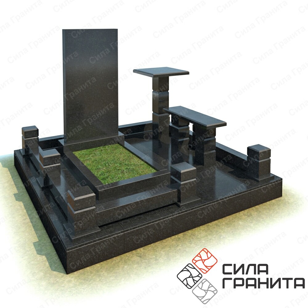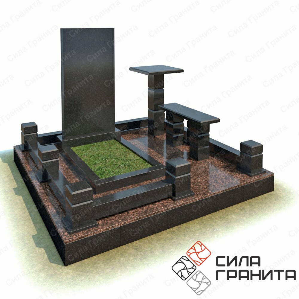 В стоимость входит стандартная площадка размером 2000*2000*100 облицованная гранитной плиткой, ограда из гранита, памятник, цветник, гранитная лавка и стол. Портрет и установка в стоимость не включены.