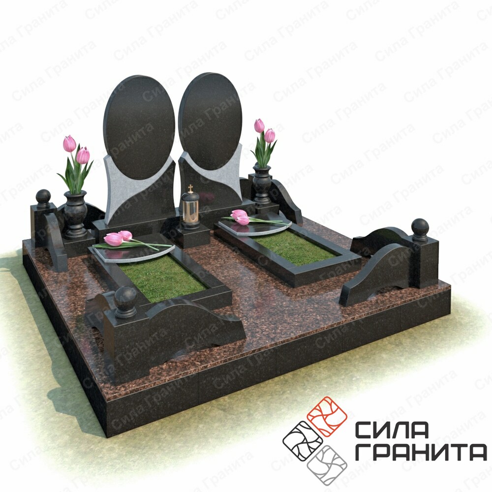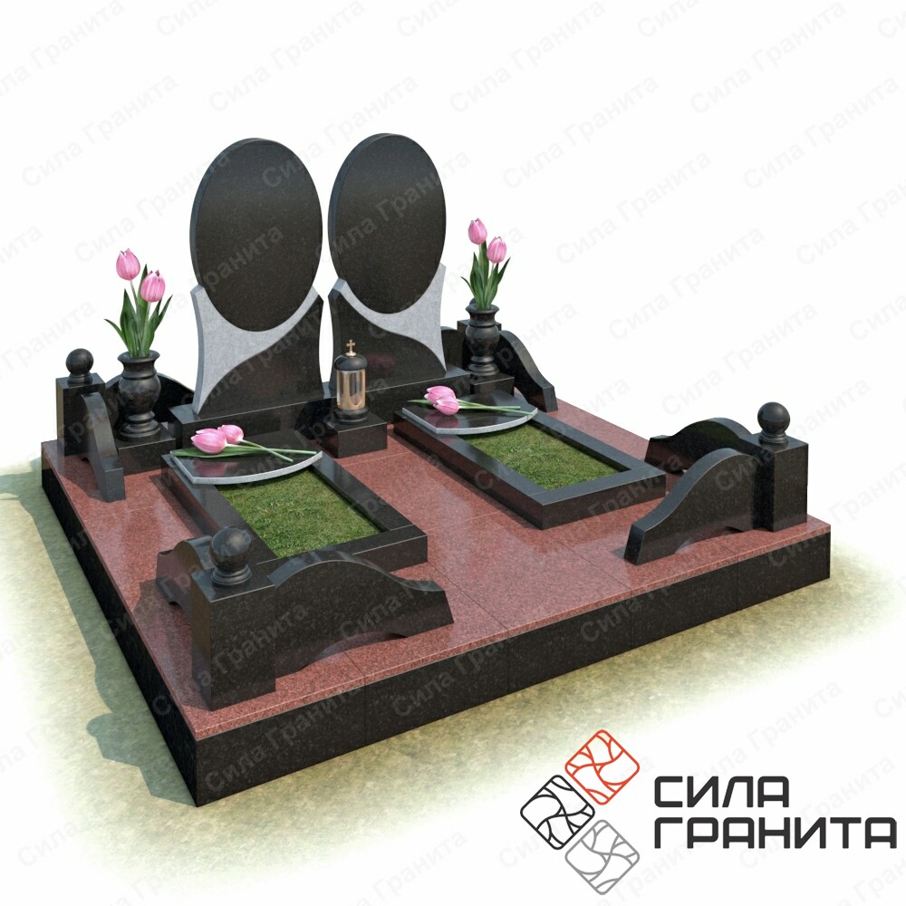 В стоимость входит Стандартная площадка размером 2000 *2000*100 облицованная гранитной плиткой, ограда из гранита, 2 памятника , 2 цветника, 2 гранитные подставки под вазы, 2 вазы, гранитная подставка под лампаду, лампада . Портрет и установка в стоимость не включены