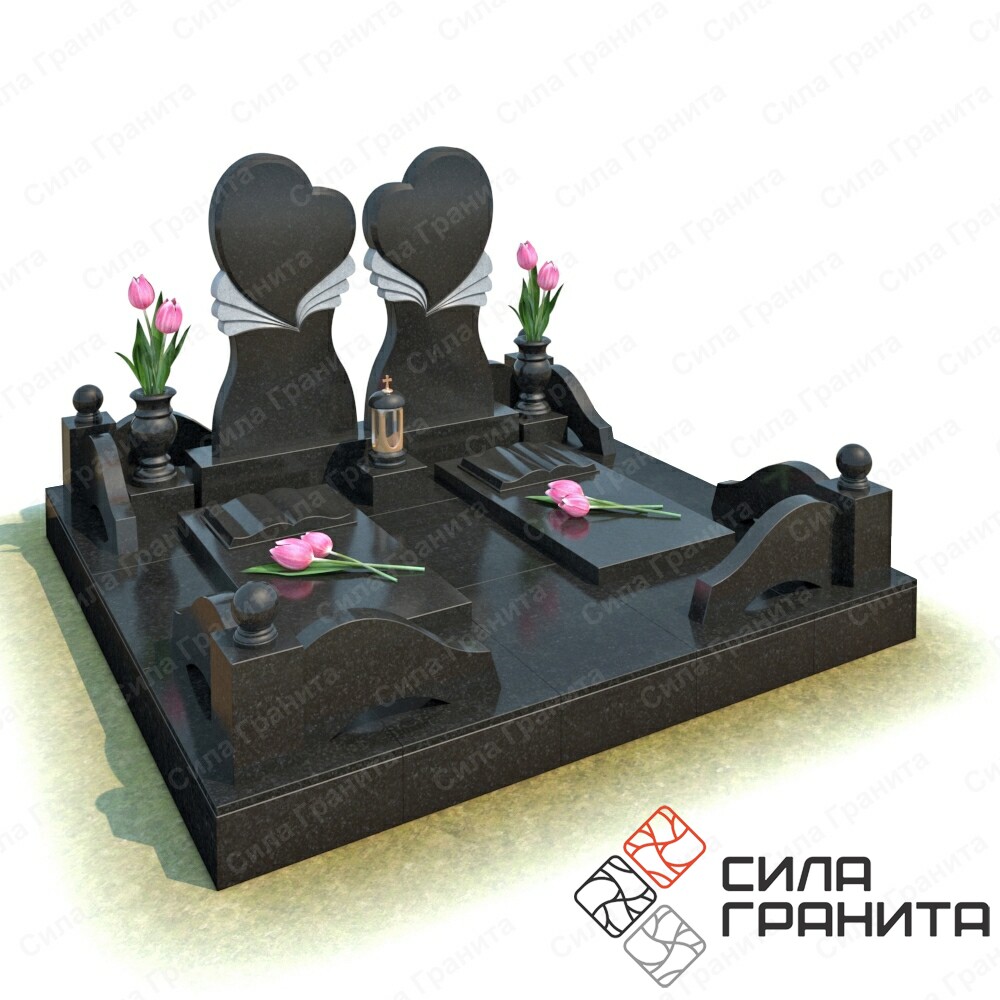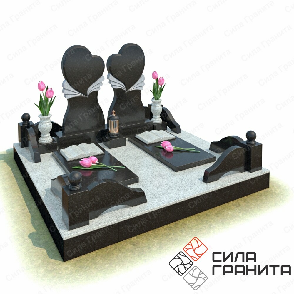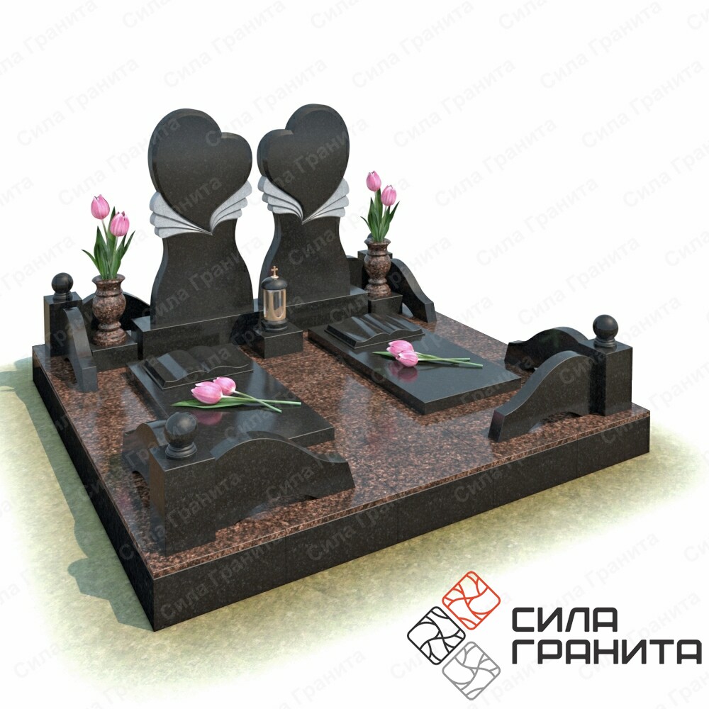 В стоимость входит Стандартная площадка размером 2000 *2000*100 облицованная гранитной плиткой, ограда из гранита, 2 памятника , 2 надгробные плиты, 2 книги из гранита, 2 гранитные подставки под вазы, 2 вазы . Портрет и установка в стоимость не включены