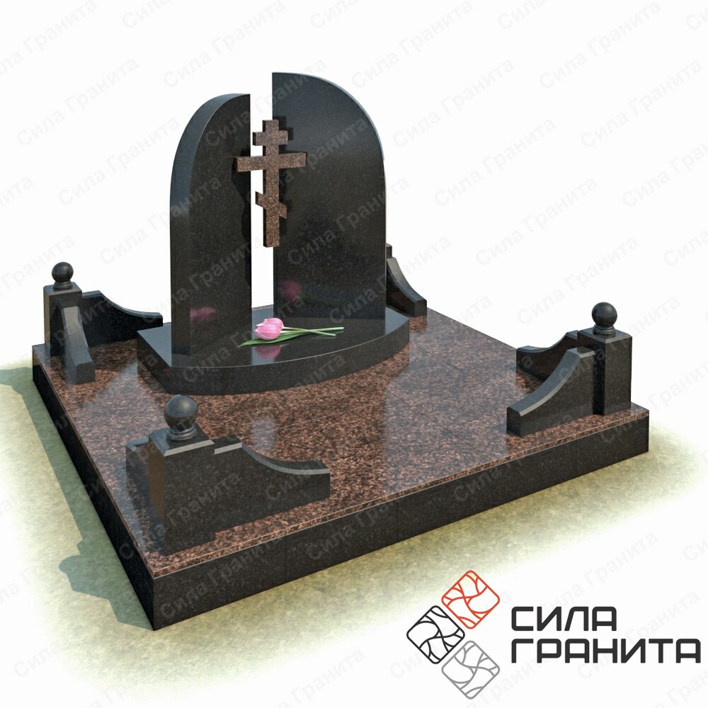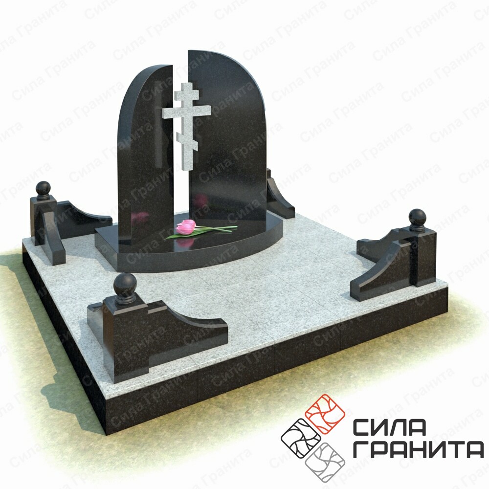 В стоимость входит Стандартная площадка размером 2000 *2000*100 облицованная гранитной плиткой, ограда из гранита, 2 памятника , православный крест из гранита, подставка из гранита . Портрет и установка в стоимость не включены.
