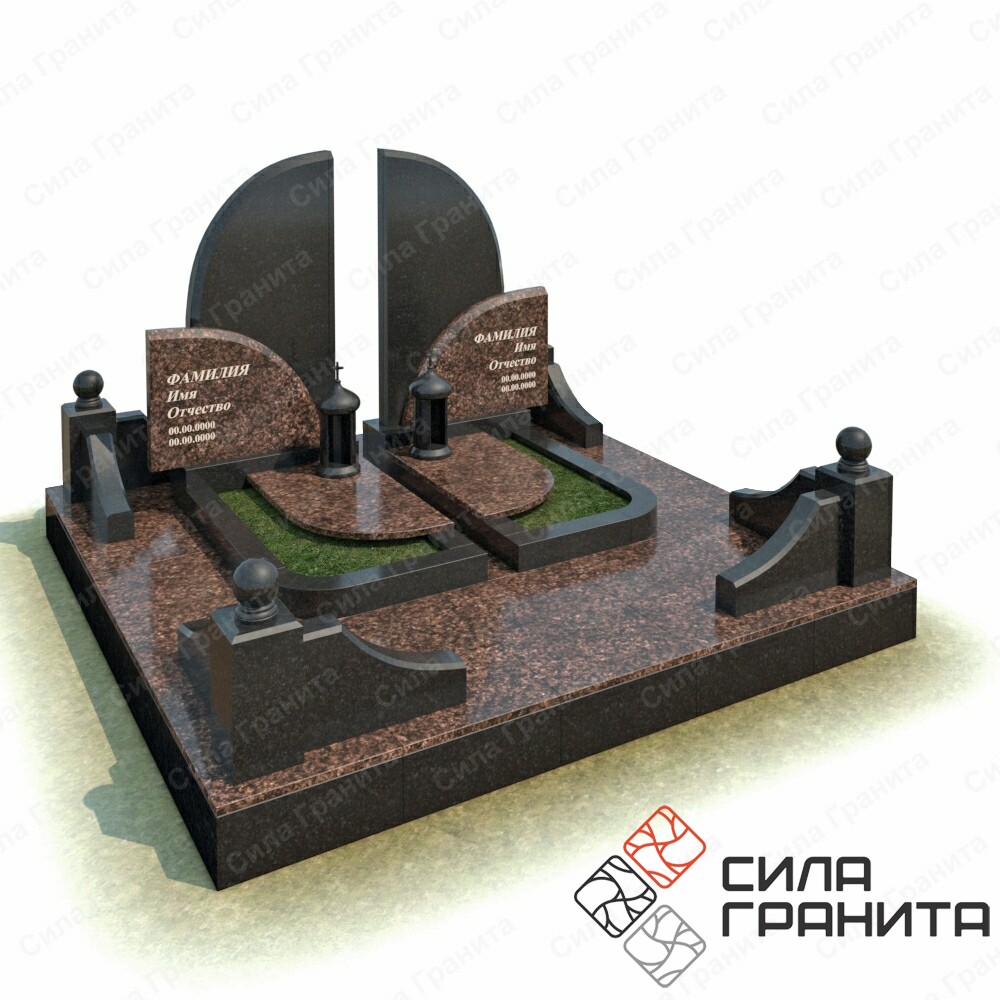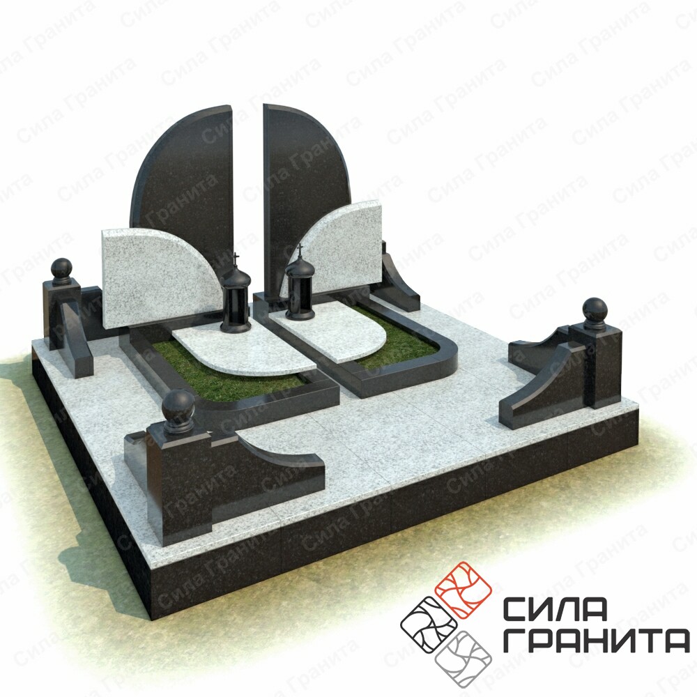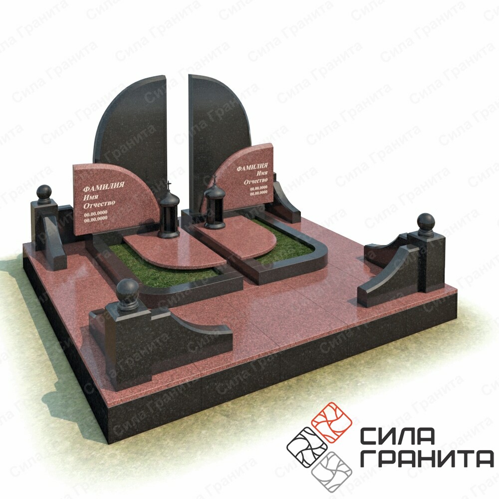 В стоимость входит Стандартная площадка размером 2000 *2000*100 облицованная гранитной плиткой, ограда из гранита, 2 памятника , 2 цветника, 2 надгробные плиты. Портрет и установка в стоимость не включены.