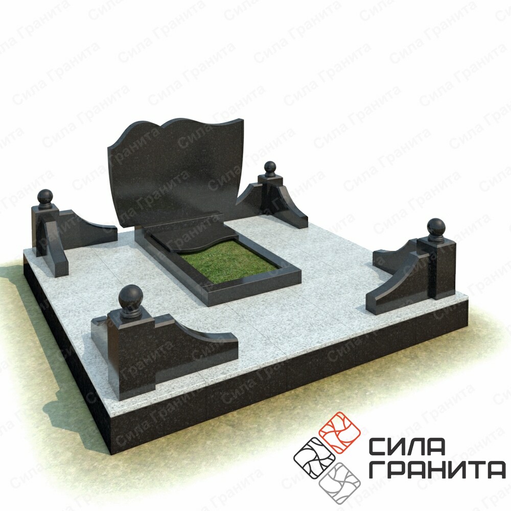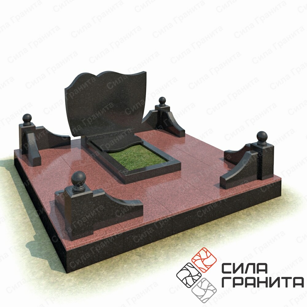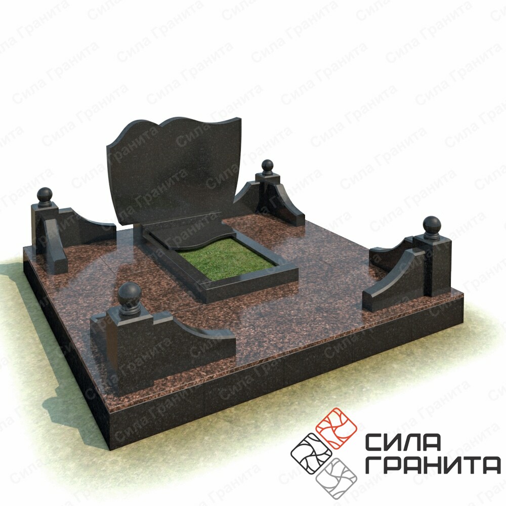 В стоимость входит стандартная площадка размером 2000*2000*100 облицованная гранитной плиткой, ограда из гранита, памятник, цветник, резная надгробная плита. Портрет и установка в стоимость не включены.