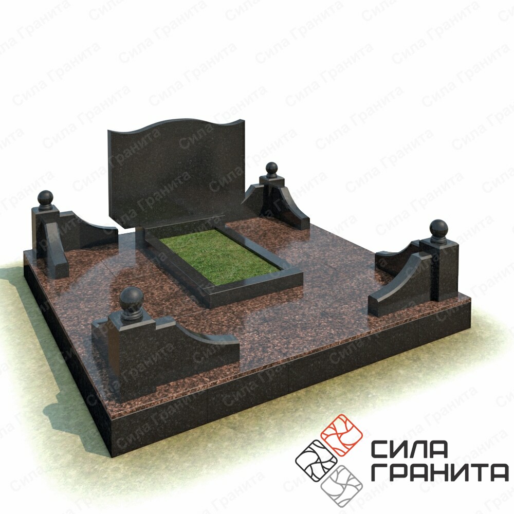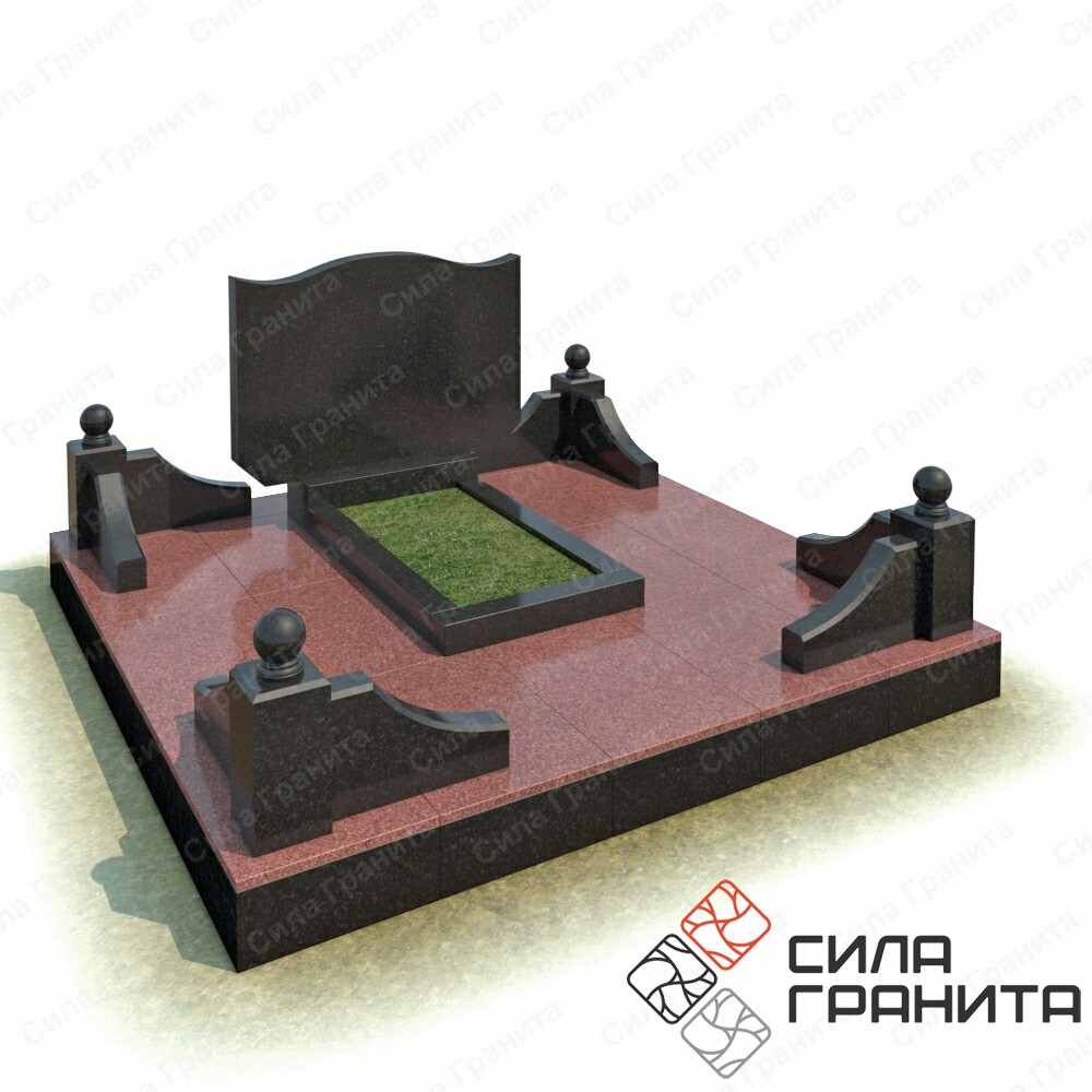 В стоимость входит стандартная площадка размером 2000*2000*100 облицованная гранитной плиткой, ограда из гранита, памятник, цветник. Портрет и установка в стоимость не включены.