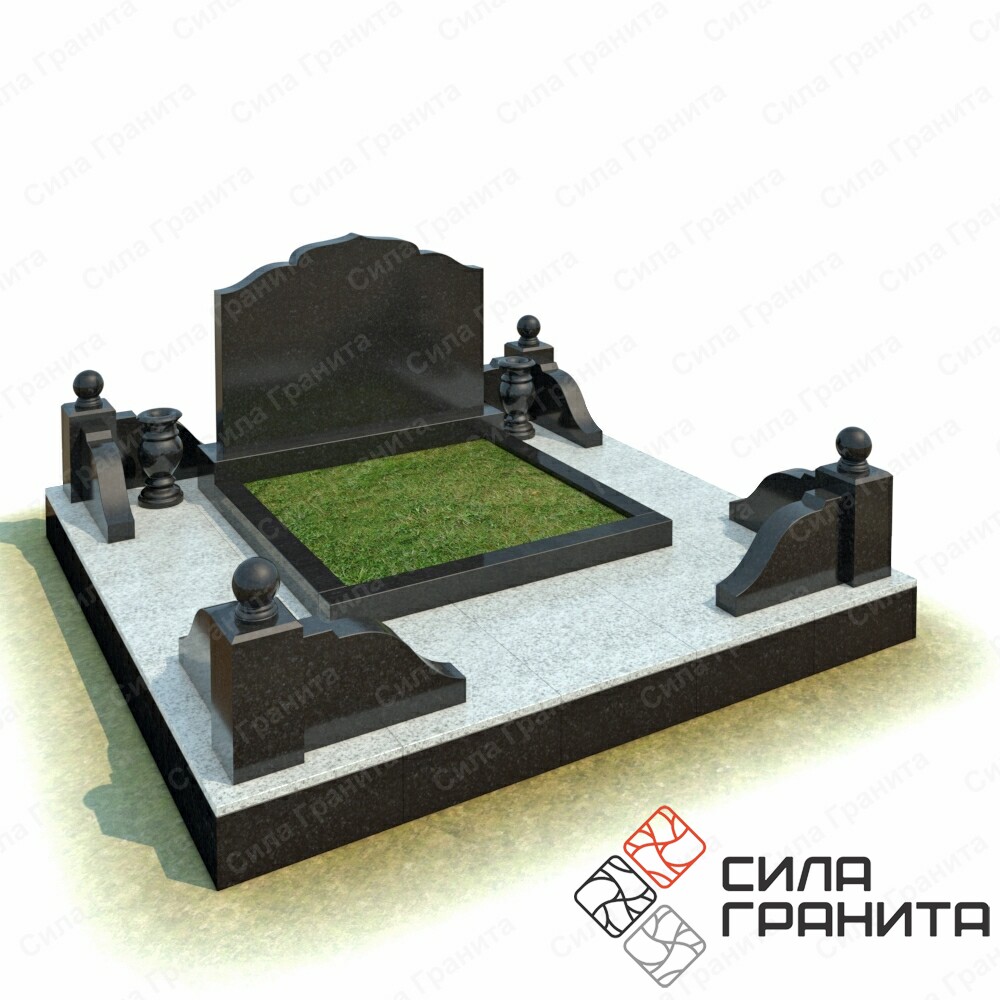 В стоимость входит стандартная площадка размером 2000*2000*100 облицованная гранитной плиткой, ограда из гранита, памятник, цветник. Портрет и установка в стоимость не включены.